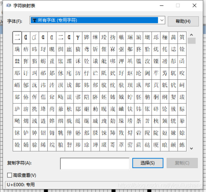 字符映射表没有所有字体(专用字符),以及显示空白的解决办法